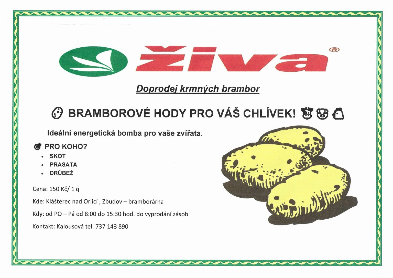 ŽIVA zemědělská obchodní, a.s. Klášterec nad Orlicí 120 PSČ 561 82