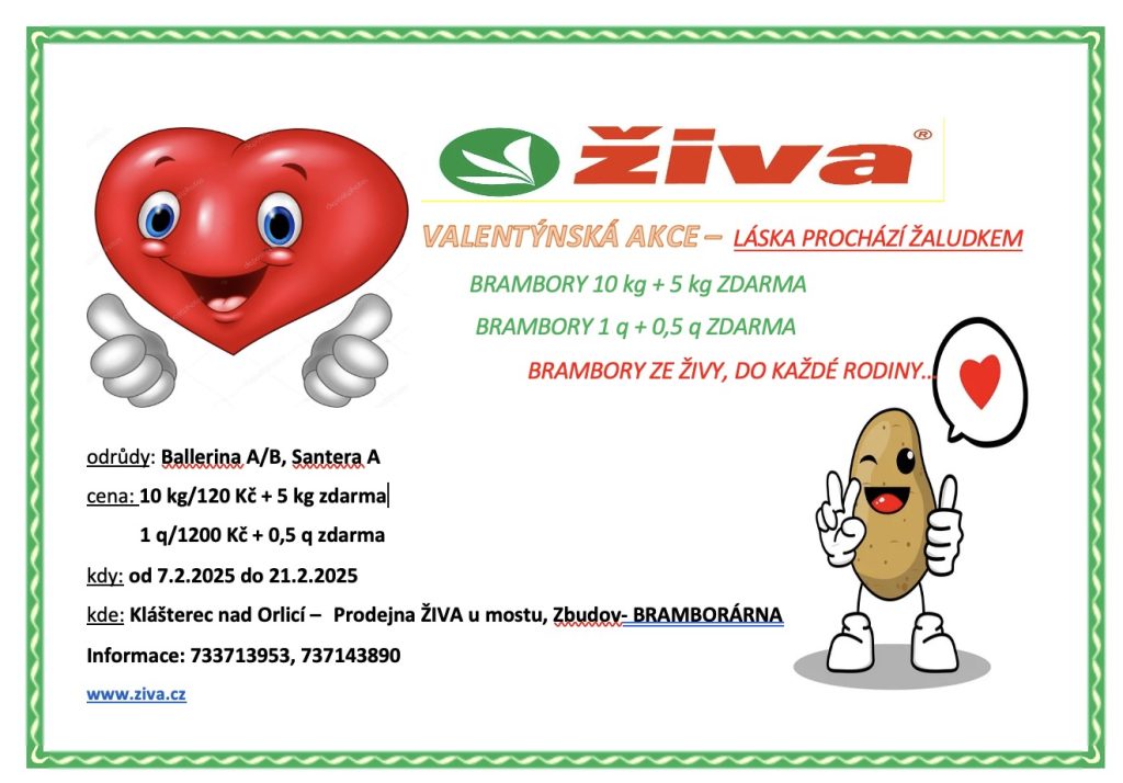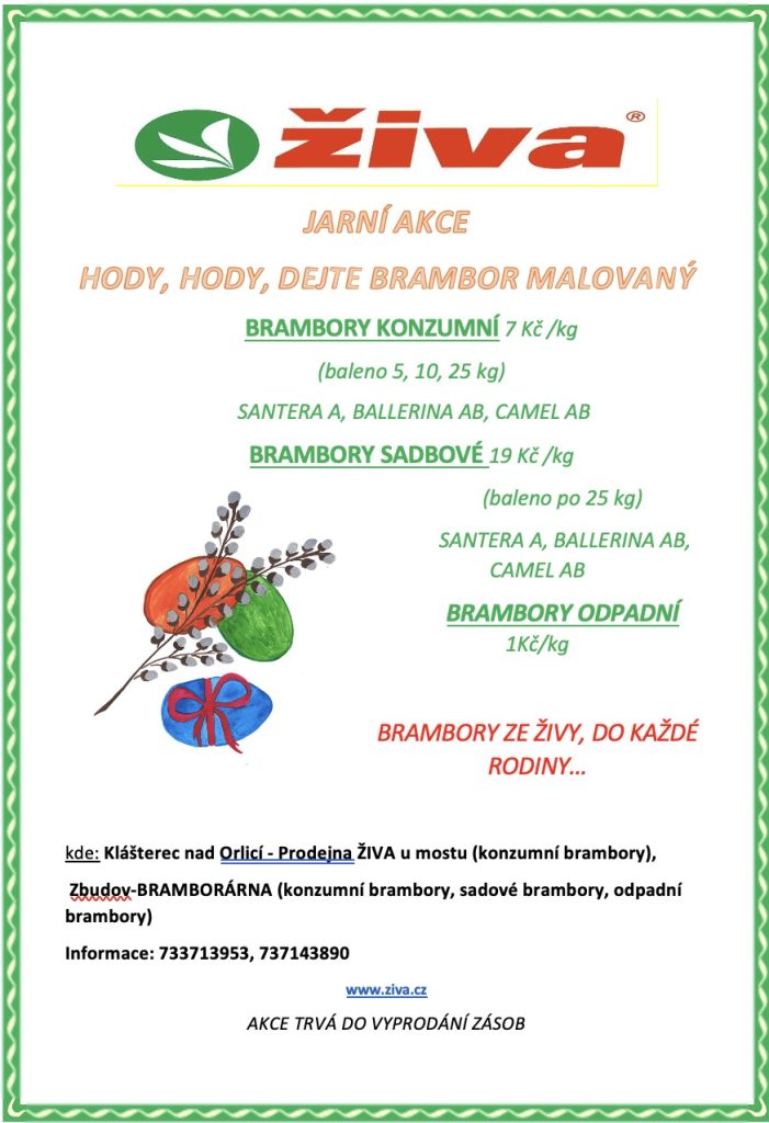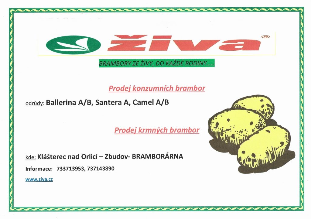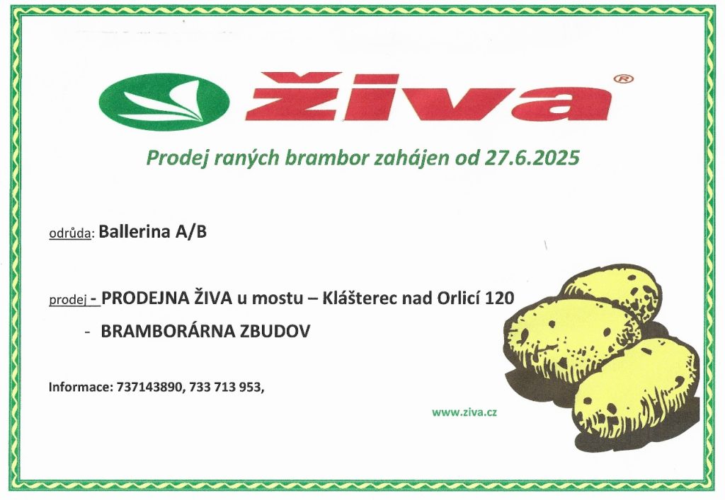 28.07.202516.9. a 20.9.2025 od 8:00 do 16:00 hod. MOŽNOST PRODEJE VOLNÝCH NETŘÍDĚNÝCH BRAMBOR PŘÍMO DO VAŠEHO VOZÍKU – BRAMBORÁRNA ZBUDOV.